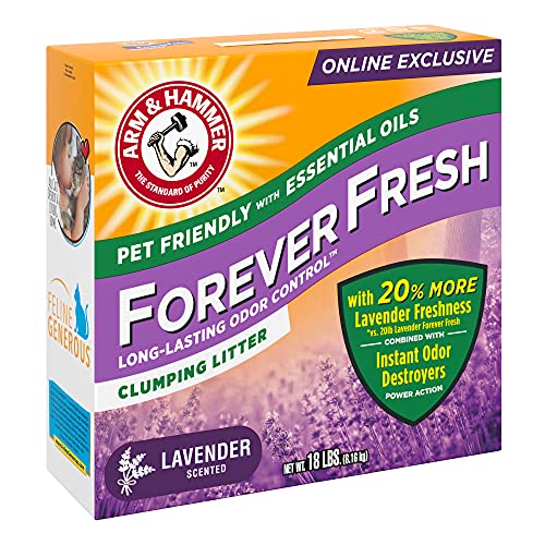 - ONLINE EXCLUSIVE! Fill your cat litter box with the refreshing scent of fresh lavender fields with ARM & HAMMER Forever Fresh Lavender Clumping Cat Litter! This effective, odor-controlling 18 lb. size cat litter is only available online—ready to be shipped directly to you anytime you need it. Its convenient, new 18 lb. size also delivers 20% more lavender freshness than our 20 lb. size!