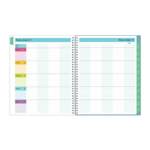 Details: Kick off the academic year with bright, colorful designs to match your busy, colorful classroom! This colorful weekly and monthly lesson planner will help you stay on track throughout the school year with dated weekly/monthly views. Monthly two-page view features reference calendars for long-term planning, a notes section for important details, and motivational teacher quotes to inspire your planning. Weekly two-page view offers lesson planning layouts with ample writing space for detailing each day. With a class birthday tracker, weekly activity schedule pages and weekly lesson planning pages, this yearly planner offers so much more than your average planner. Insert your favorite photos inside the glossy, clear front sleeve cover for a unique planner cover. High quality white paper provides clean writing space for jotting down your appointments, to-dos and reminders. Durable coated tabbed dividers are long lasting and make accessing information a breeze. Premium quality covers and twin-wire binding provide reliable durability for daily use. An interior storage pocket makes it easy to keep pens, receipts, cards and loose notes handy. Stay on track throughout the academic year with this large 8.5 x 11 lesson planner dated July 2023 – June 2024. Mix and match with other planning products from Blue Sky to organize your daily life. Blue Sky creates modern and sophisticated organizational planners and calendars to fit the scheduling needs of busy people – whether it’s for business professionals, college students, teachers, or anyone with appointments to make note of. Keep your life organized with our full line of products including desk pad calendars, wirebound tabbed weekly and monthly planners with contacts and notes pages to accommodate your scheduling needs, and laminated two-sided wall calendars, all in a variety of colors and patterns to suit your lifestyle and personality.