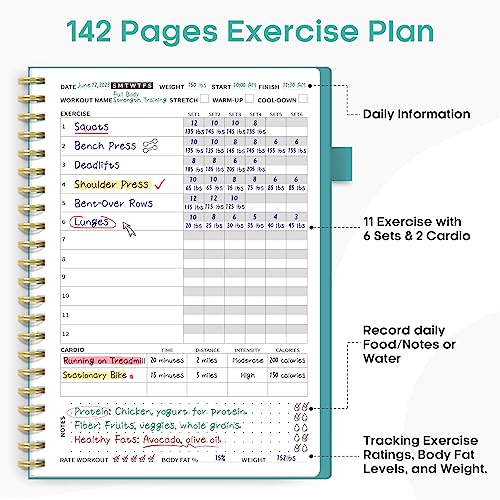 Fitness Workout Journal for Women & Men, A5(5.5″ x 8.2″) Workout Log Book Planner for Tracking, Progress, and Achieving Your Wellness Goals-Blue