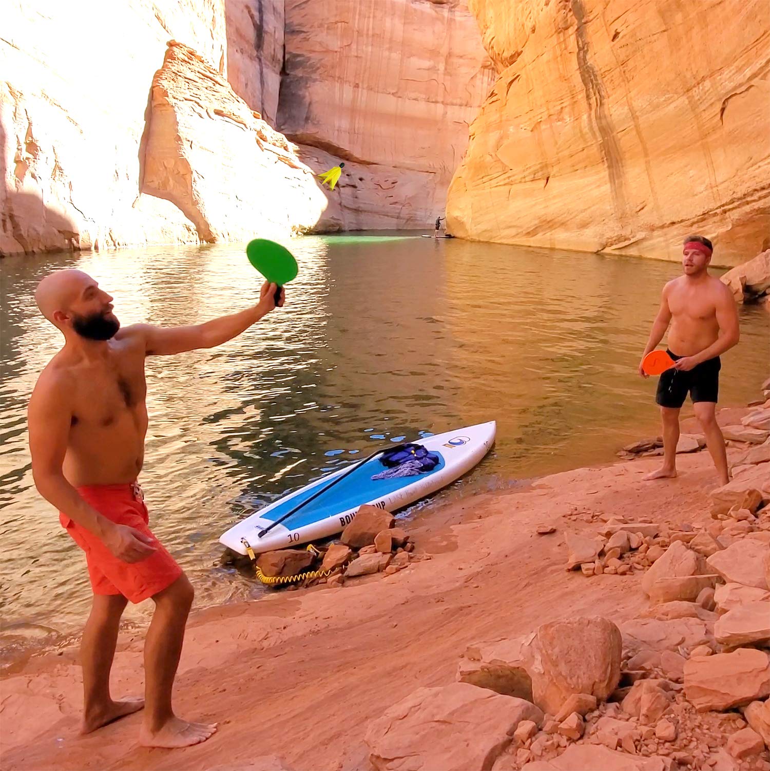• FULL SET INCLUDES: 2 fluorescent wooden paddles, 1 ball and 4 birdies; 2 red birdies for slow play, 2 yellow for fast and a durable carry bag. Jazzminton paddle game is an exciting, fast paced outdoor game for kids and adults. Get outdoors with Jazzminton and have a blast