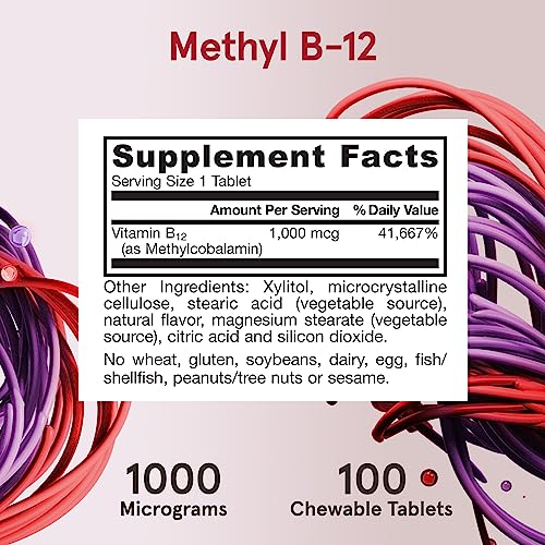 - Convenient Chewable Tablet – Each lemon-flavored chewable tablet delivers 1000 micrograms (mcg) of methyl B-12. Contains no wheat, gluten, soybeans, dairy, egg, fish/shellfish, or peanuts/tree nuts, or sesame.