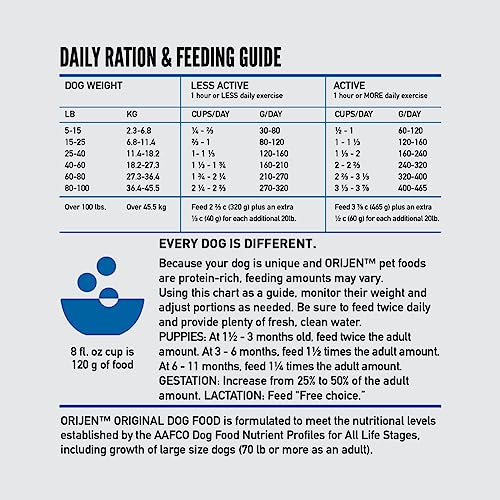 • ORIJEN Original dog food delivers a diet rich and varied in fresh, whole animal ingredients from free-run chicken and turkey, wild-caught fish, and cage-free eggs
