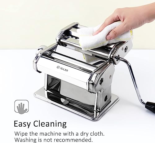 Pasta Machine, ISILER 9 Adjustable Thickness Settings Pasta Maker, 150 Roller Noodles Maker with Aluminum Alloy Rollers and Cutter for Pasta, Spaghetti, Fettuccini, Lasagna