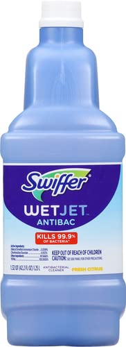 Swiffer WetJet Antibacterial Solution Refill for Floor Mopping and Cleaning, All Purpose Multi Surface Floor Cleaning Solution, Fresh Citrus Scent, 1.25 Liters